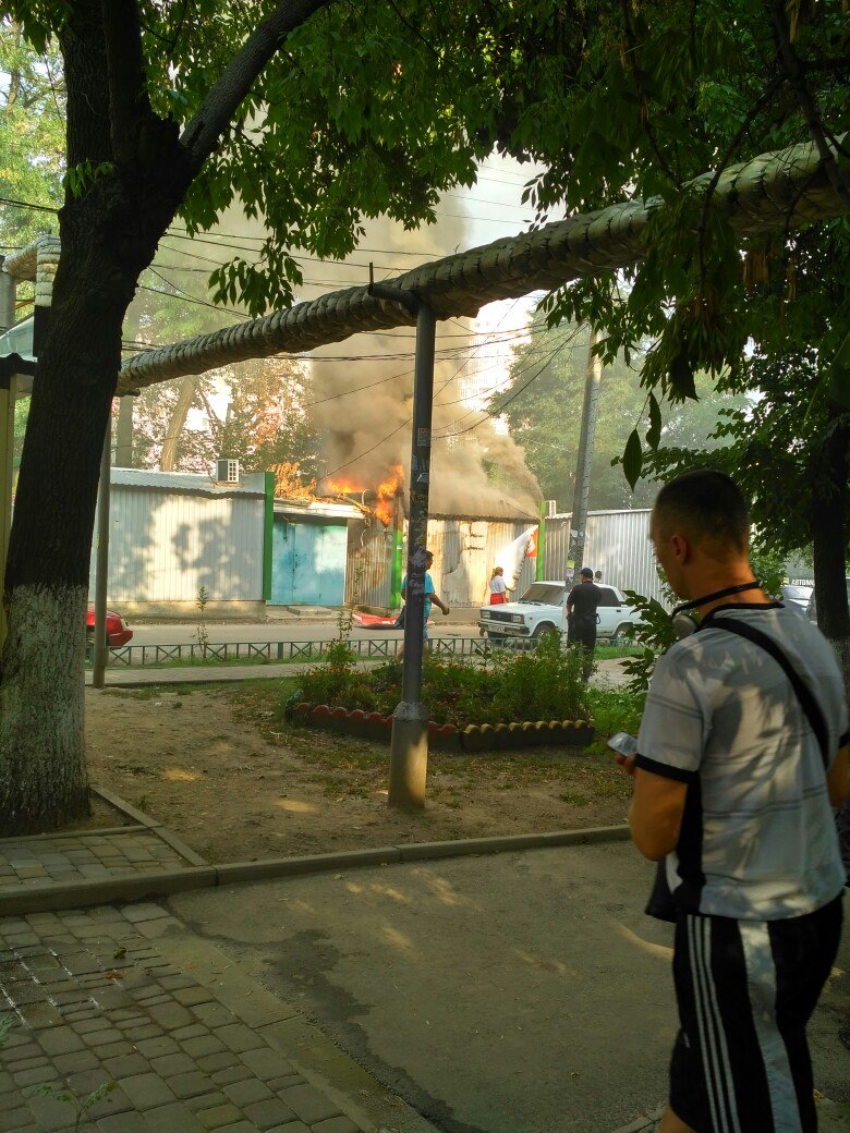 Столбы дыма, языки пламени и море зевак - возле станции метро Холодна Гора в переулке Болгарском в Харькове горел молочный киоск. Об этом сообщают пользователи соцсетей.