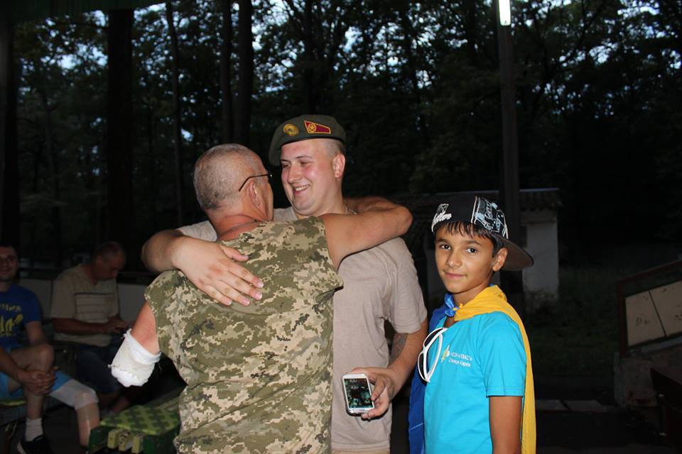 Дети из Луганской области, которые благодаря волонтерам в эти дни отдыхают на Харьковщине, помимо многочисленных экскурсий по музеям и выставкам, проводят время и с демобилизованными бойцами АТО, которые находятся на реабилитации в волонтерском центре.