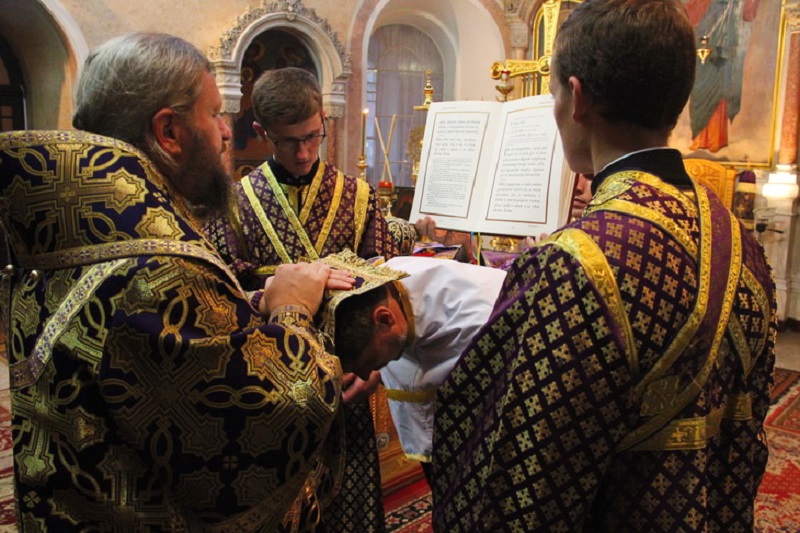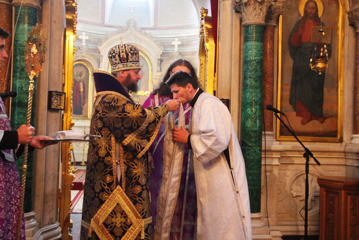 Как Православная Сумщина, 14 августа архиепископ Сумский и Ахтырский Евлогий за Божественной литургией в Спасо-Преображенском кафедральном соборе Сум совершил диаконскую хиротонию над участником АТО.