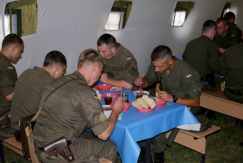 В ходе проведения полевых занятий офицеров накормили вкусным и горячим обедом, который тут же приготовили на полевой кухне. Как говорится: «Война - войной, а обед по распорядку».