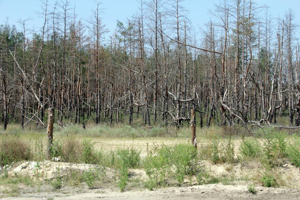 Из Попасной мы резко уходим на север, на Лисичанск и Северодонецк, прямой дороги к городу Счастье нет. Впереди Первомайск, а там сепаратисты. На подъезде к Лисичанску поразил лес стоящий вдоль дороги. Точнее лес там самый обычный, сосновый, а вот вместо грибов в том лесу стоят мины, и вдоль дороги таблички с лаконичной надписью "МИНЫ". И все, и больше сказать нечего, и только мурашки по коже от ужаса, что это наша земля и в ней мины.
