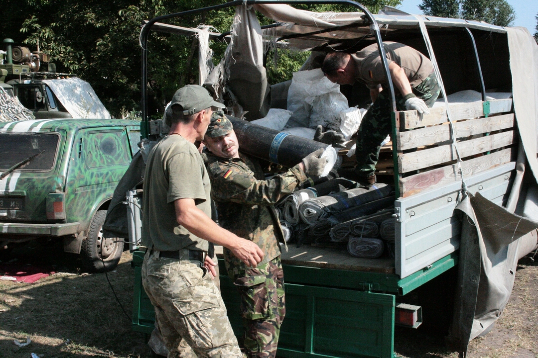 После ночевки в штабе батальона мы выезжаем на передовую завезти бойцам на "нули" кофе, сладости, воду, арбузы, сигареты, чай, в общем, стандартный набор волонтеров. Основной груз рубероида оставляем в штабе, командование разберется кому нужнее гидроизоляция блиндажей на передке. Наш провожатый еще один воин-интернационалист, гражданин Украины, родом из Азербайджана с позывным 2ДиВиДи". Легкий кавказский акцент и седеющие усы все, камуфлированная панама и практически не исчезающая улыбка располагают к нему мгновенно. "ДиВиДи" как настоящему мужчине всегда есть, что сказать. Сделали остановку в селе у колодца набрать свежей воды, наш проводник подошел ко мне и говорит: