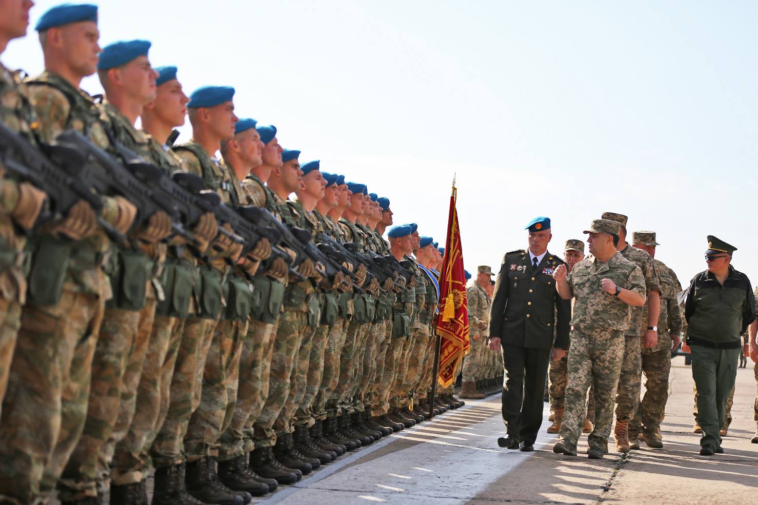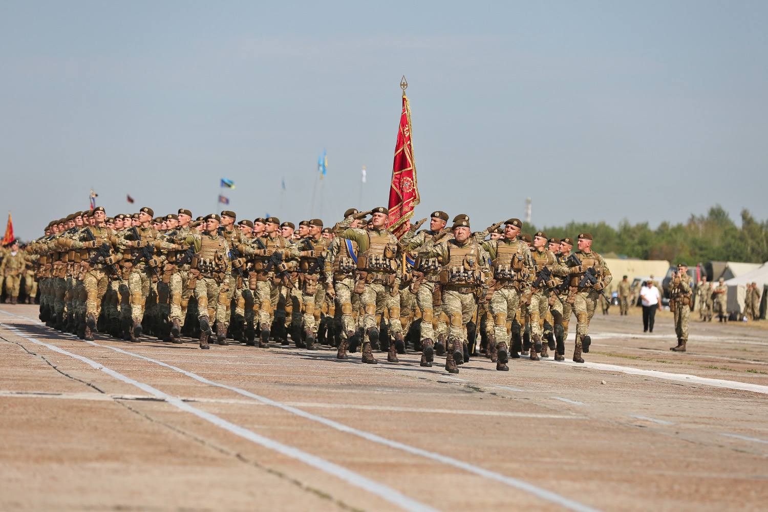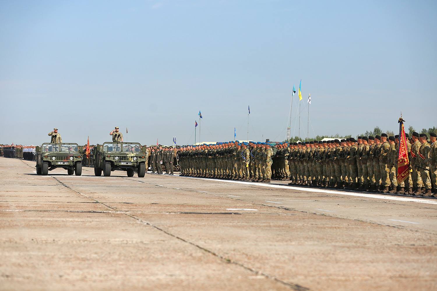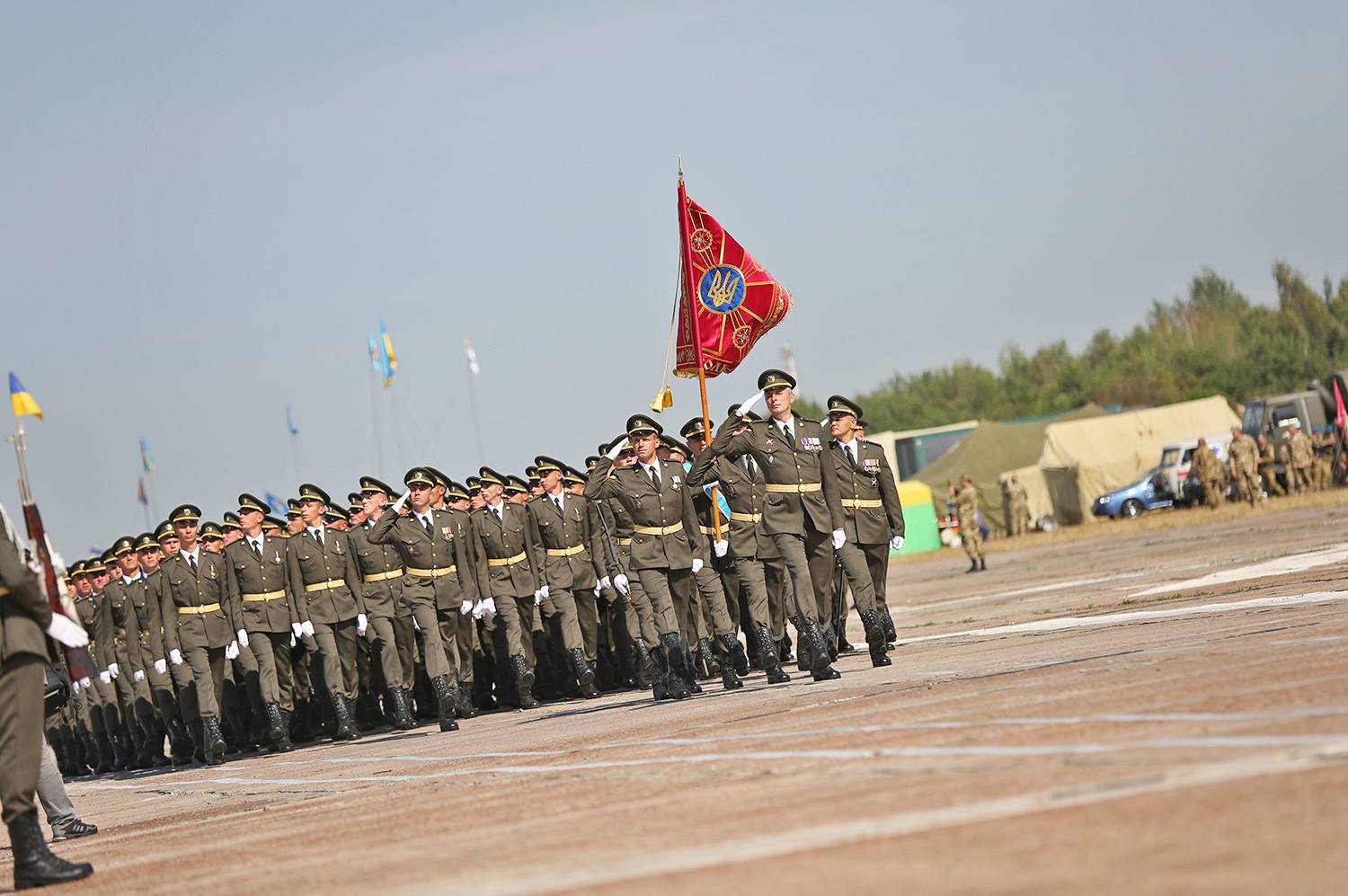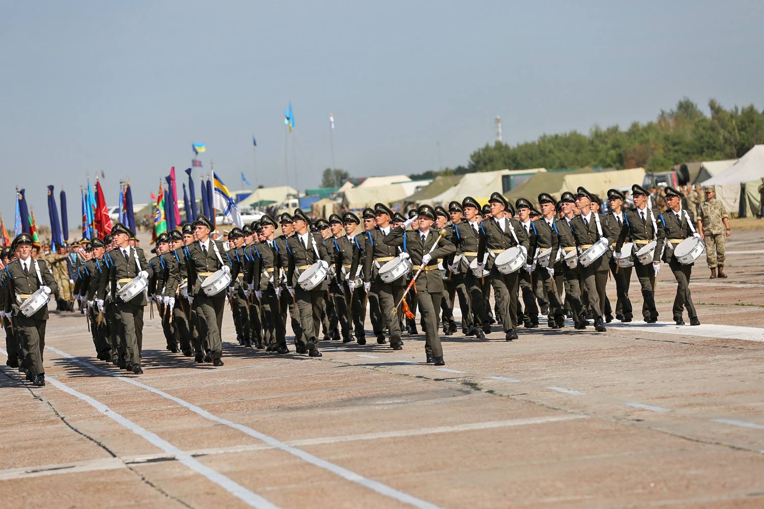 На злітно-посадковій смузі аеродрому Київського державного авіаційного заводу “Авіант” відбулася репетиція військових парадних розрахунків, які візьмуть участь у параді до Дня Незалежності.
