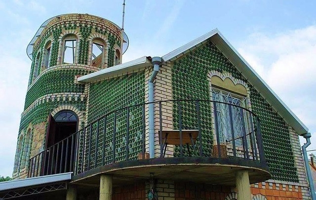 Житель Запорожья Владимир Сыса построил необычный дом и надстройку над ним. Как сообщает 061, в качестве строительного материала мужчина использовал бутылки из-под шампанского.