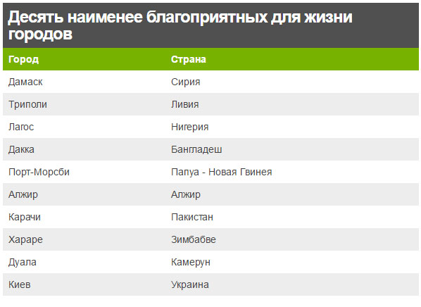 Последние места в рейтинге занимают Дамаск (140), ливийский Триполи и нигерийский Лагос.