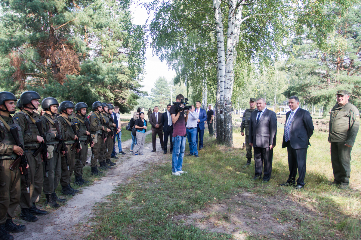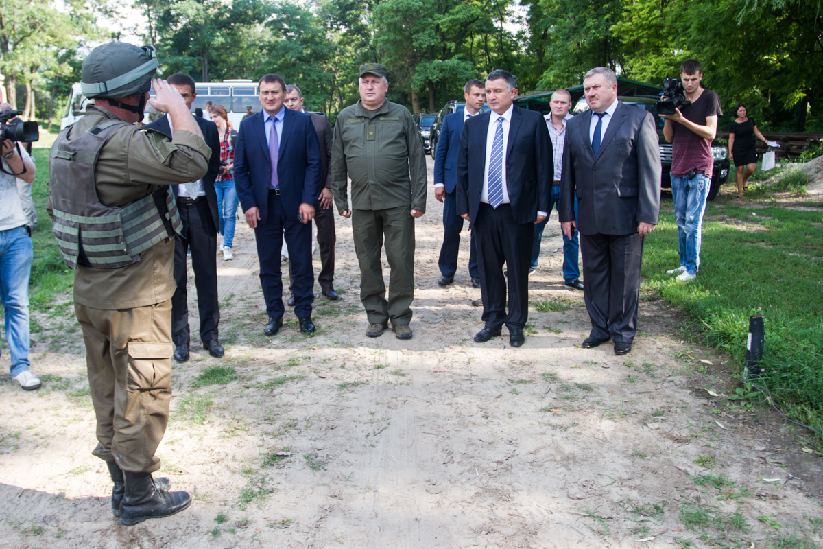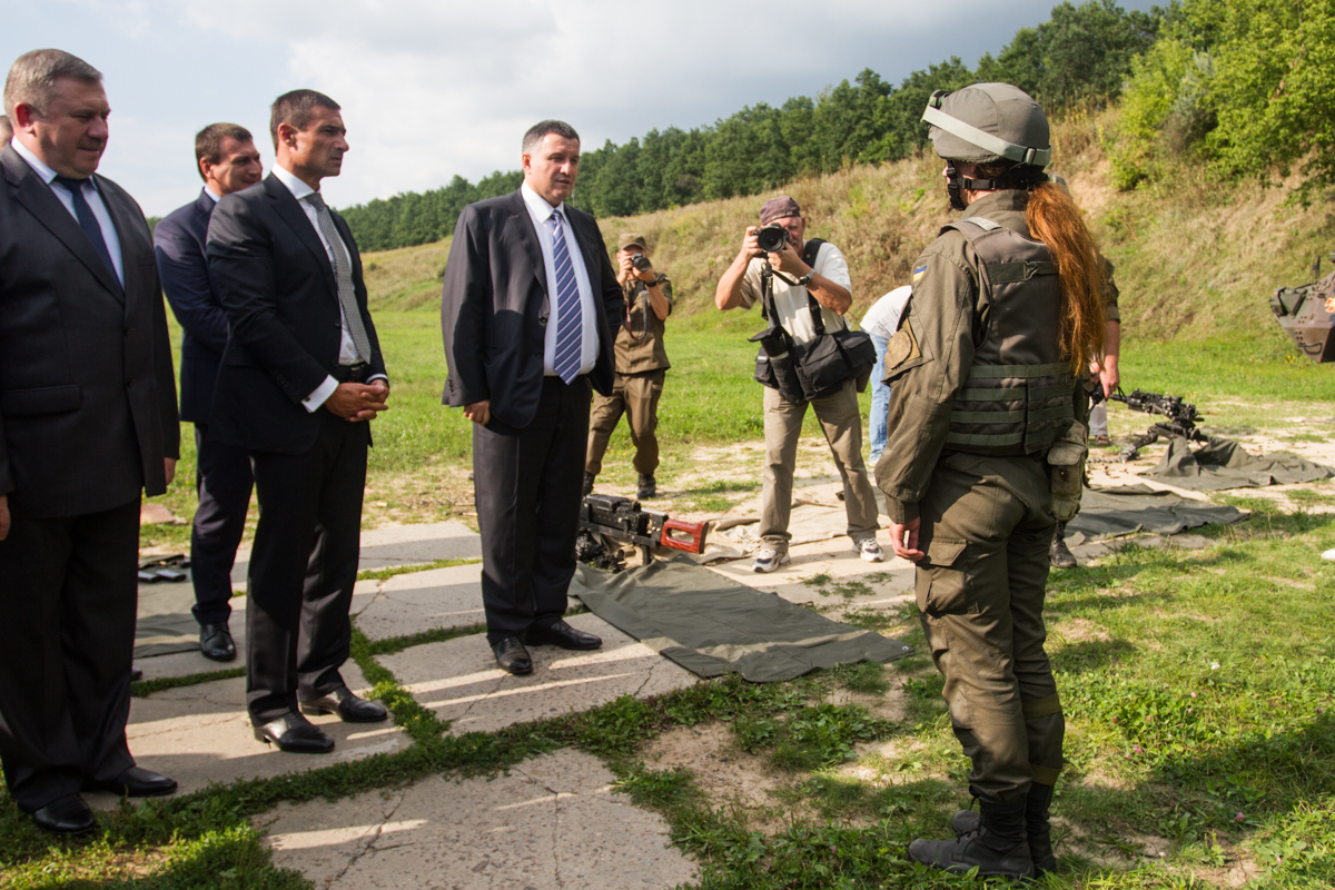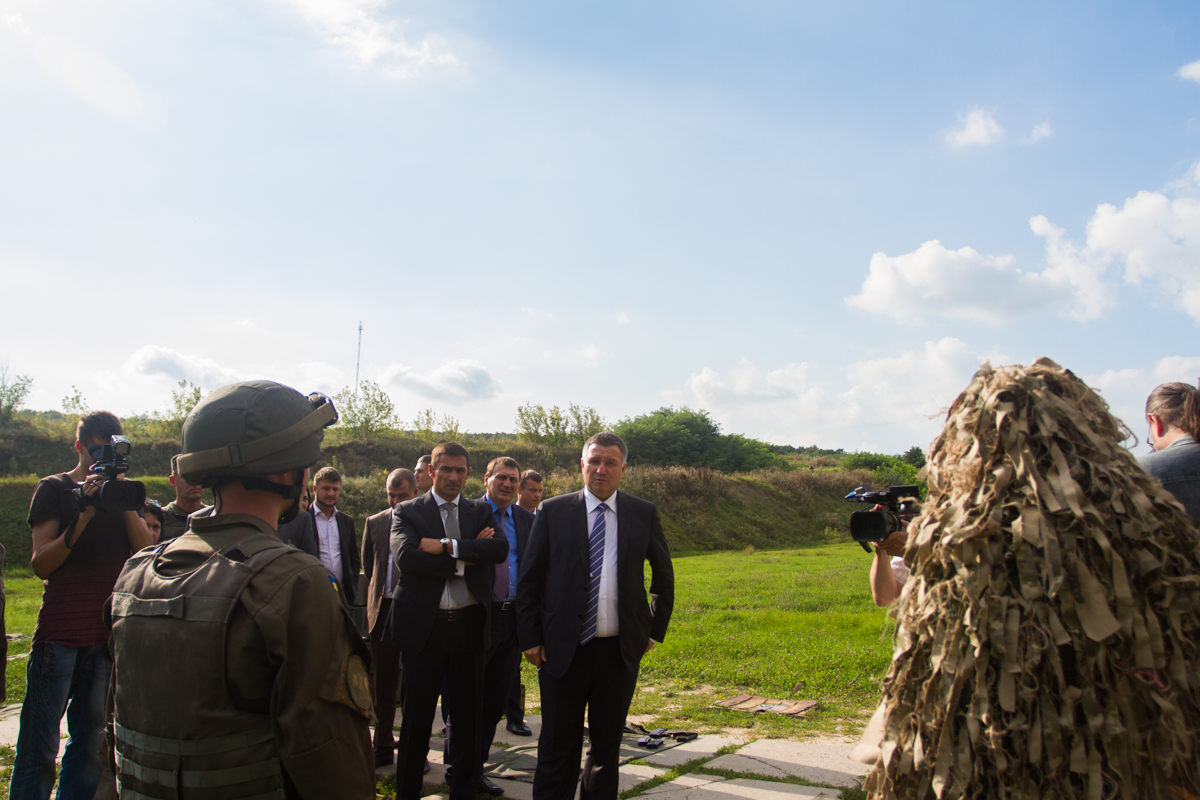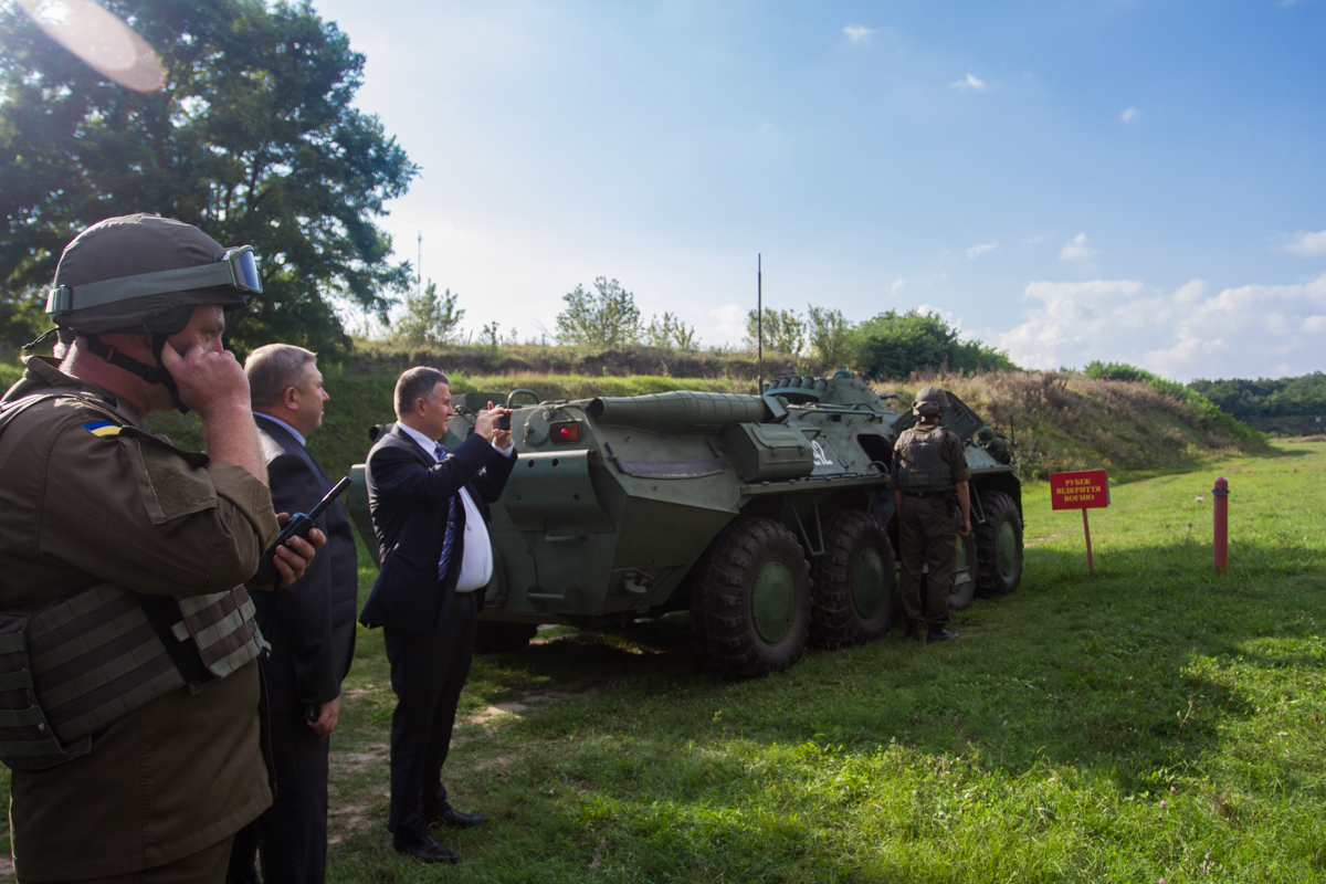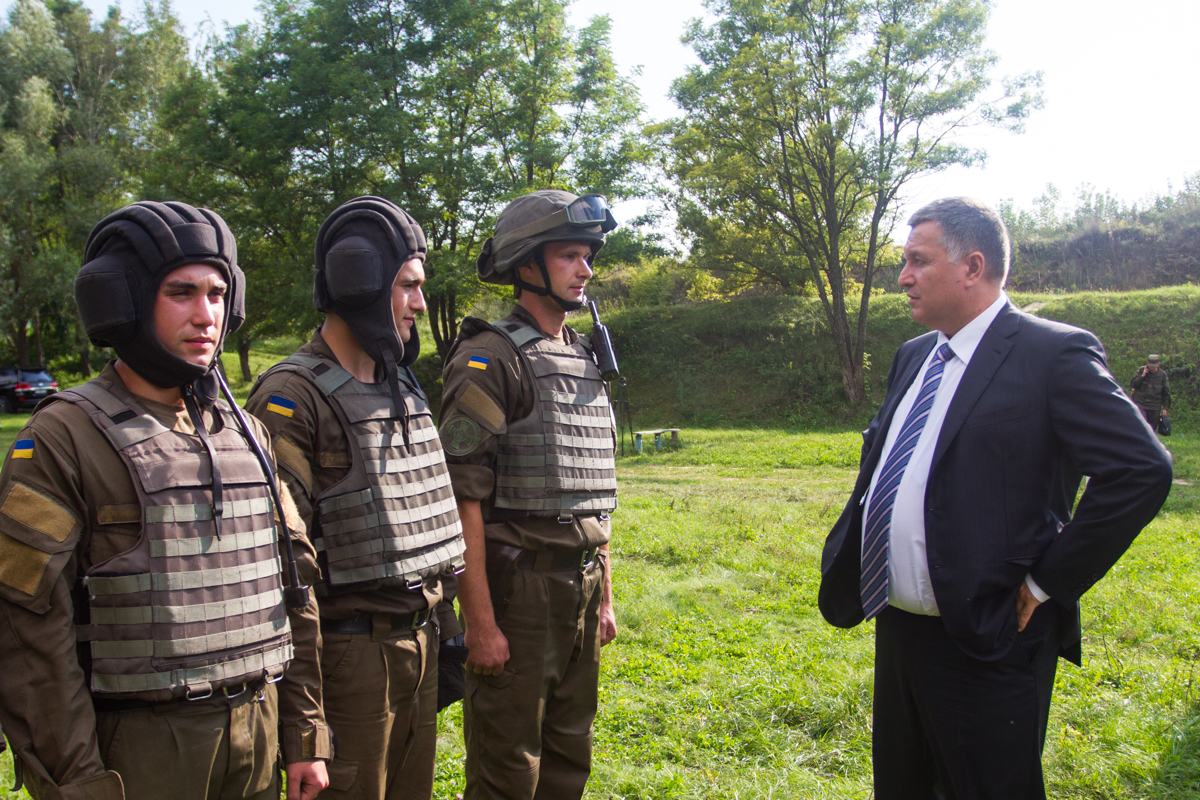 Арсен Аваков вместе с командующим Нацгвардии генерал-лейтенантом Юрием Аллеровым посетили учебный центр Академии Нацгвардии. Им были продемонстрированы действия курсантов на блокпосту, умение вести огонь из оружия разных калибров и бронетанковой техники, а также навыки по преодолению специальной полосы препятствий.