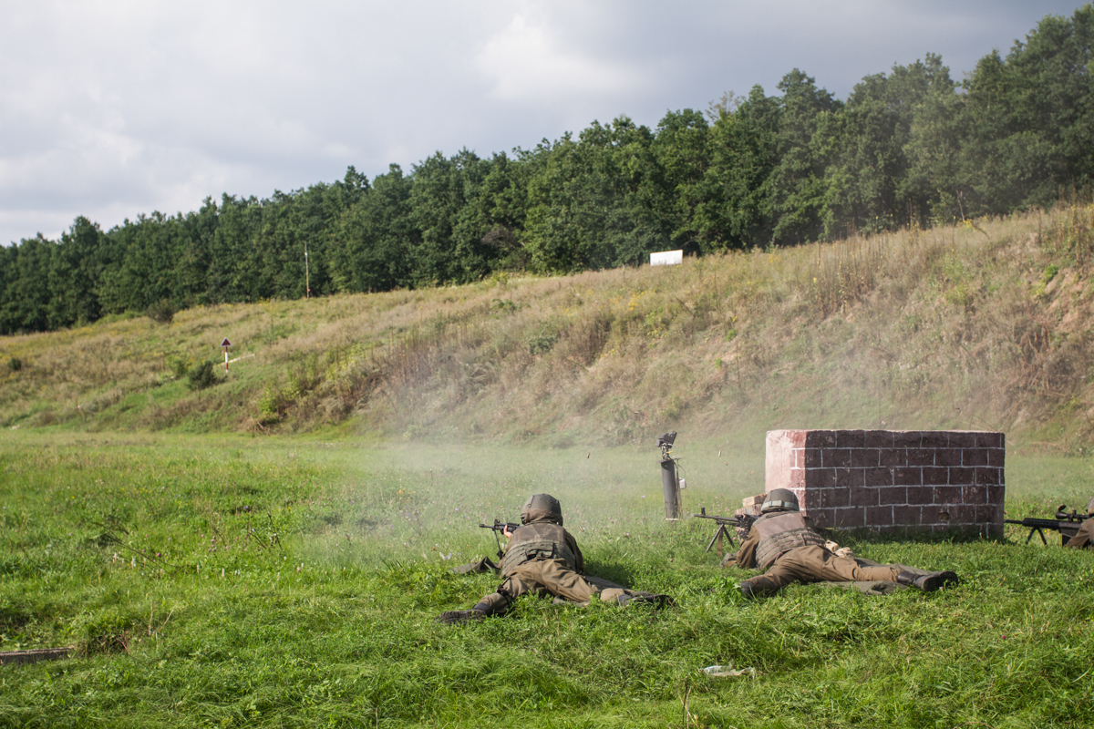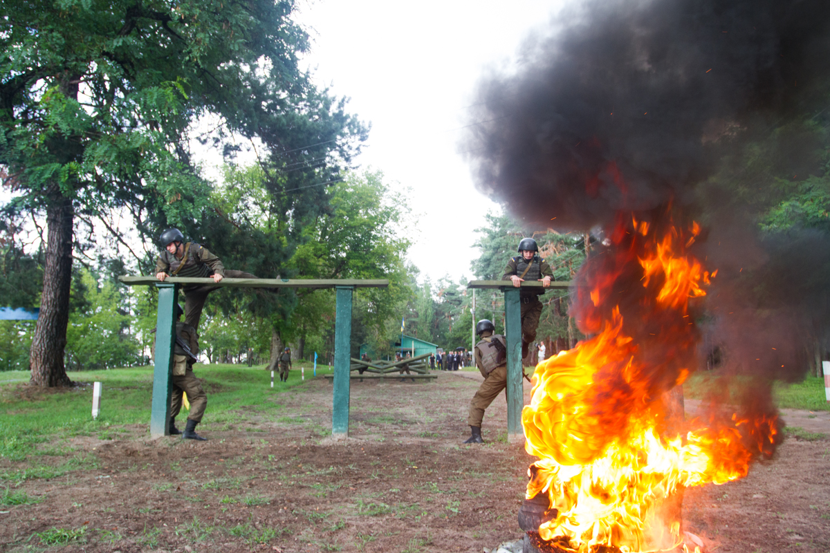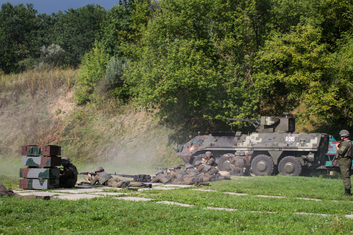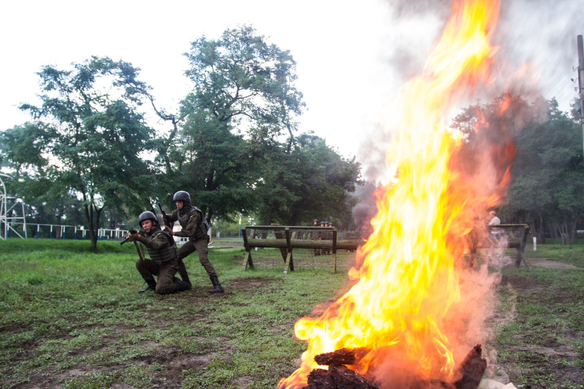 На военном стрельбище курсанты продемонстрировали высокий уровень своей огневой подготовки. Действуя в составе взвода, они вели огонь по условному противнику из оружия, находящегося на вооружении в Нацгвардии. В частности будущие командиры показали свое мастерство в стрельбе из автомата АК-74, станкового гранатомета АГС-17, винтовок СВД и Barrett, ручного гранатомета РПГ-7В и других видов оружия. Поддерживали взводный огонь бронетранспортеры БТР-80 и БТР-4Е, которыми также управляли курсанты.