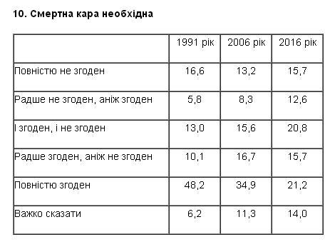 В частности 21,2% респондентов полностью согласны с утверждением, что смертная казнь необходима, а 15,7% - скорее согласны, чем несогласны.