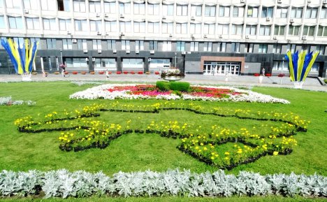 Ко Дню Государственного Флага Украины и Дню Независимости на центральной площади Сум сделали из цветов карту Украины.
