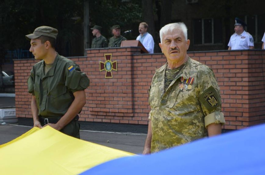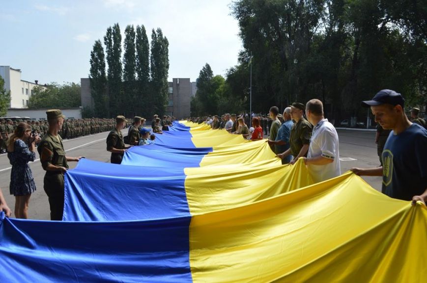 Волонтеры вместе с военнослужащими развернули флаг Украины на территории военной части 3029, приурочив событие ко Дню государственного флага.