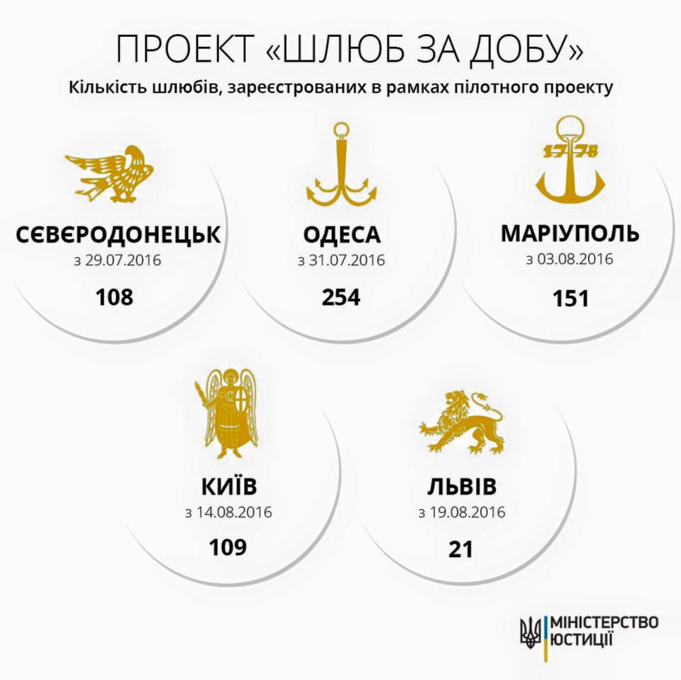 Лише за місяць роботи проекту "Шлюб за добу" послугою скористалися 643 пари.