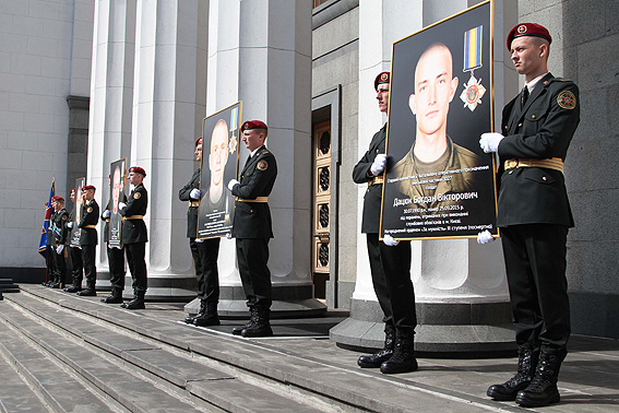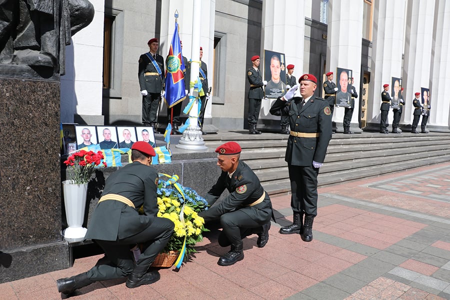 В честь погибших бойцы Специального батальона «Почетный караул» прошли торжественным маршем, а впоследствии первый заместитель Председателя Верховной Рады Украины Ирина Геращенко встретилась с родителями и близкими погибших гвардейцев и вручила им награды.