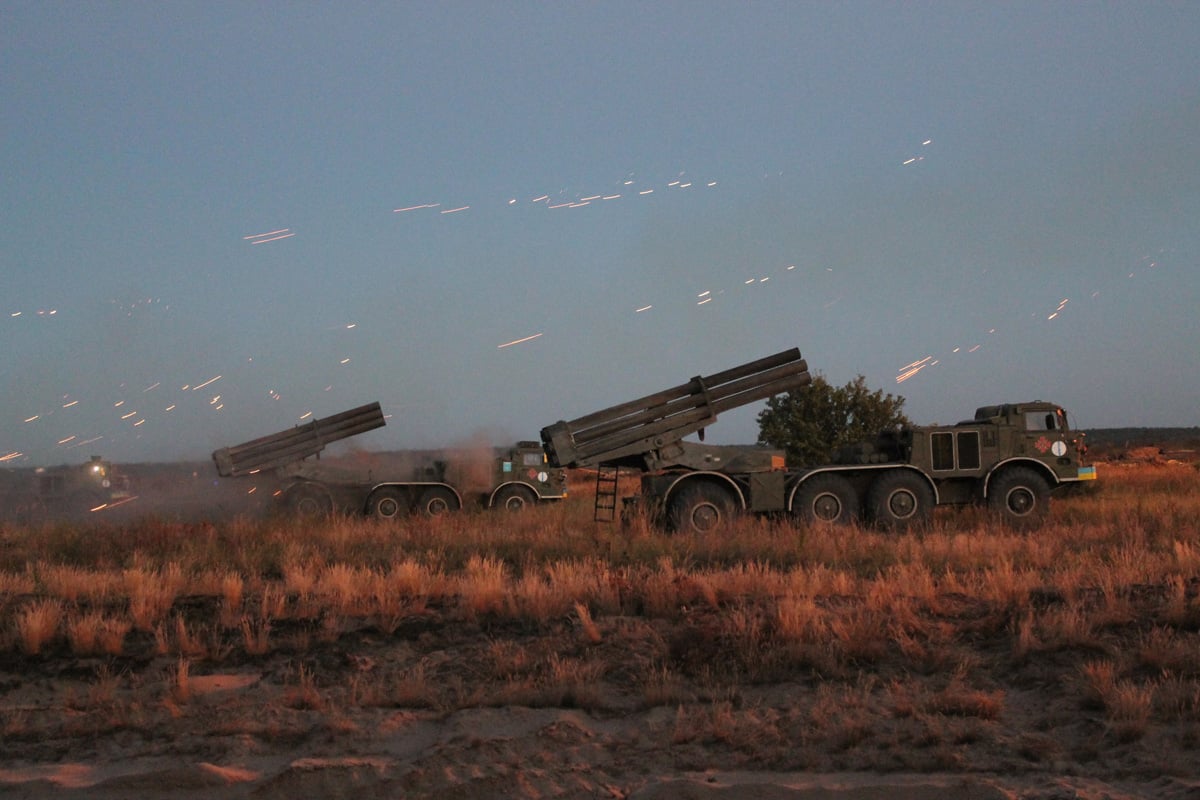 Артиллеристы отшлифовывали профессиональные навыки и умения в выполнении огневых задач боевой стрельбы из реактивных систем залпового огня 9П140 "Ураган" как днем, так и ночью. По словам командиров, экипажи должны уверенно действовать именно в темное время суток, так как в районе АТО, именно в этой время больше активизируются российские оккупационные войска, отмечает пресс-служба Минобороны.