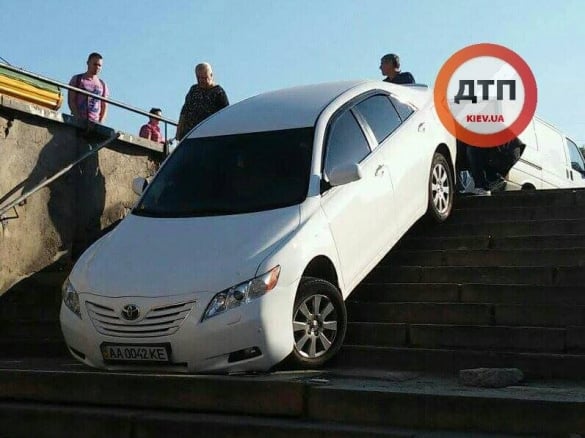 В Киеве, в районе Борщаговка, водитель машины Toyota Camry решил устроить экстремальный тест-драйв, попытавшись заехать на своем автомобиле в подземный переход.