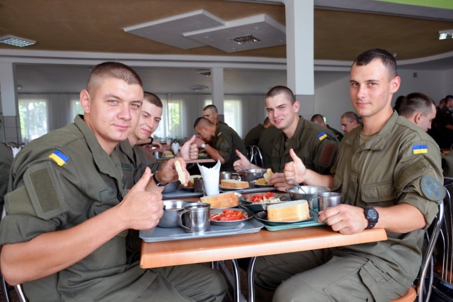 А пока военнослужащие 2-й Галицкой бригады, во время обеда, на первое выбирают между украинским борщом и гороховым супом, а на второе - между пловом и макаронами по флотски.
