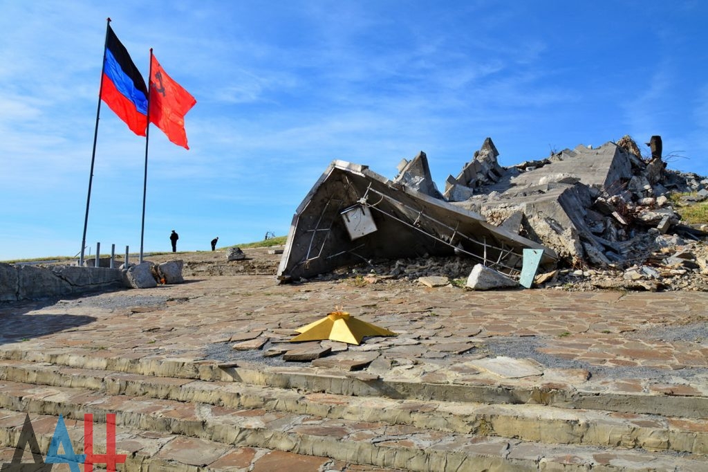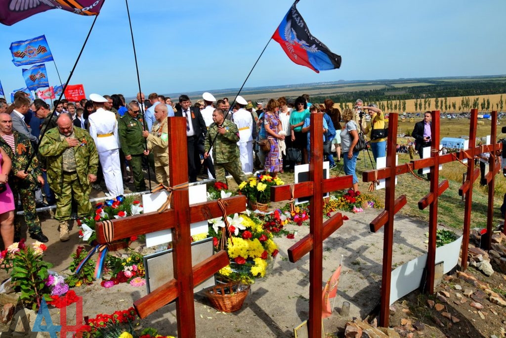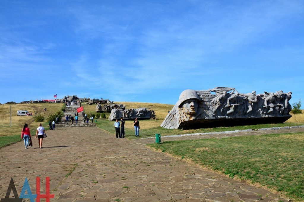 Несколько тысяч жителей окккупированных территорий Донбасса собрались на месте разрушенного в ходе боев 2014 года мемориального комплекса Саур-Могила, чтобы почтить память погибших в годы Второй мировой войны и ... местных террористов с российскими оккупантами, которые были уничтожены в ходе войны на Донбассе.