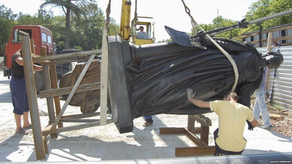 До поры до времени монумент и объекты вокруг него укутали плотной тканью и полиэтиленом – наверное, от сглаза. Но все равно крымчане и гости Симферополя ходят поглазеть на парковое чучело: «Здесь памятник Екатерине!». Не спорю, то, что Екатерина захватила Крым, многим до сих пор приятно. Они так воспитаны. А если при этом еще и объяснять, что оккупировать Крым или пойти убивать за «Новороссию» это не преступление, а «восстановление исторической справедливости», то многие пойдут на убой и будут гордиться своими «геройствами».