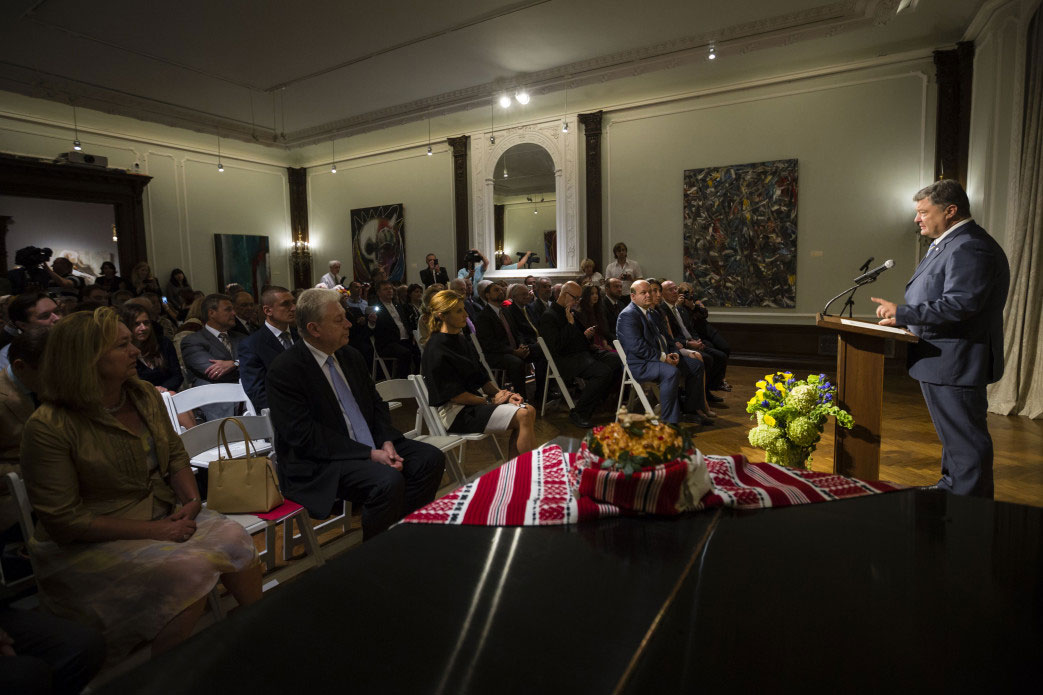 Президент Украины Петр Порошенко встретился с представителями украинской громады США в Украинском институте Америки в Нью-Йорке. Глава государства назвал символичным, что второй раз начинает свой визит в США с общения с украинцами Америки.