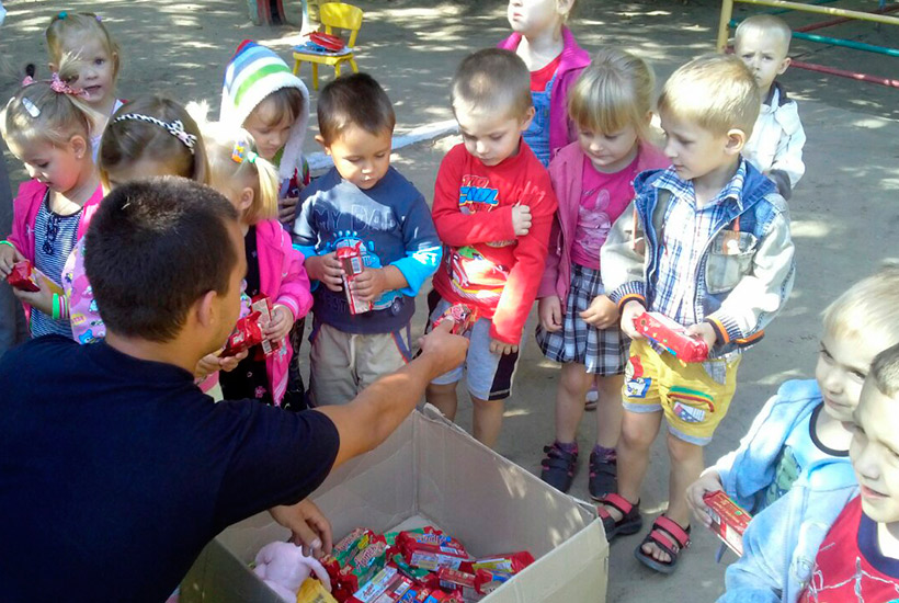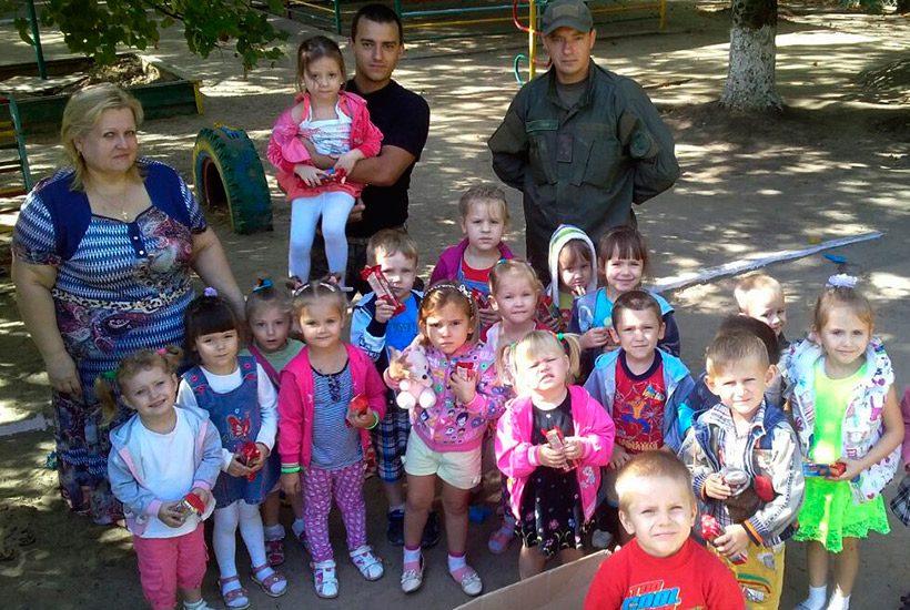 Волонтеры позаботились о детях и попросили воинов на свое усмотрение решить, кому эти вещи нужней. Бойцы, не долго думая, приобрели сладости и отправились в детский сад, который больше всего нуждается в помощи, ведь в одной из групп воспитываются дети, больные детским церебральным параличом.