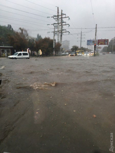 Сильный ливень, который начался в понедельник вечером и продолжается до сих пор, уже традиционно стал причиной транспортного коллапса в Одессе.