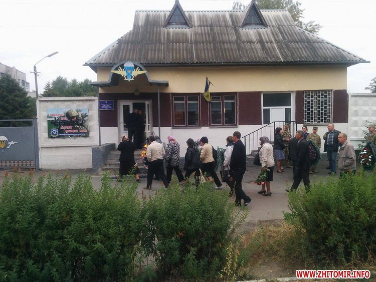 20 вересня близько 9:50 житомиряни почали збиратися біля КПП 95-ї бригади, аби попрощатися із заступником командира 95-ї бригади Сергієм Дзибою.