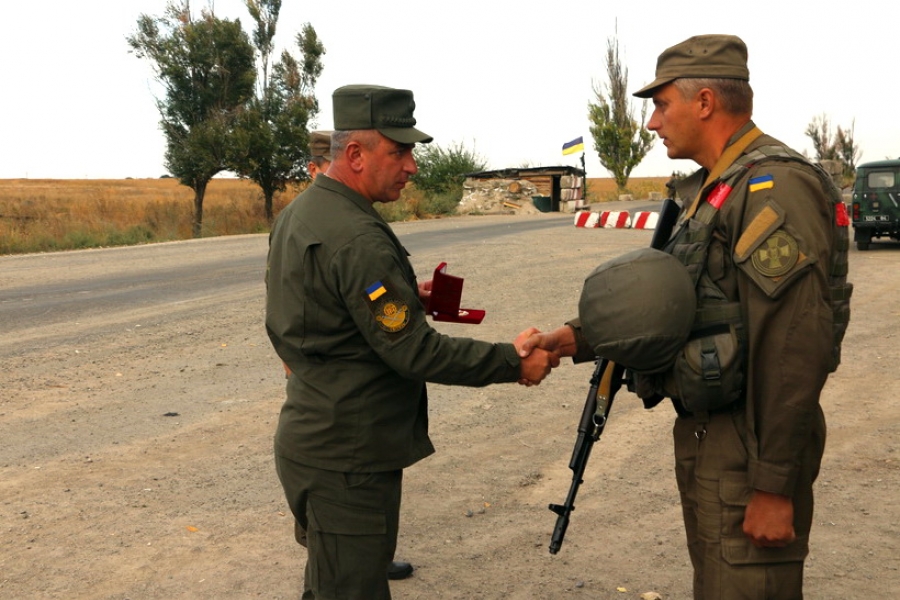 Генерал-лейтенант Николай Балан на блокпостах наградил грамотами и нагрудными знаками «За доблестную службу» военнослужащих, которые с честью и достоинством защищают Украину на линии огня.
