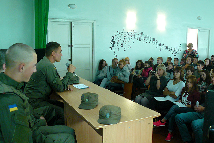 На днях бойцов воинской части 3057 пригласили на встречу со студентами Мариупольского профессионального машиностроительного лицея, руководство которого заботится о военно-патриотическом воспитании молодежи.