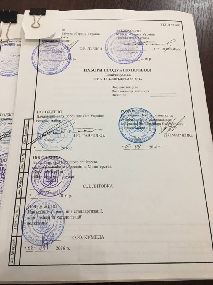 Сегодня Степан Полторак подписал технические условия, это финальный шаг перед покупкой. Деньги на новый сухпай Министерство обороны уже выделило, перекроив бюджет и перекроив траты.