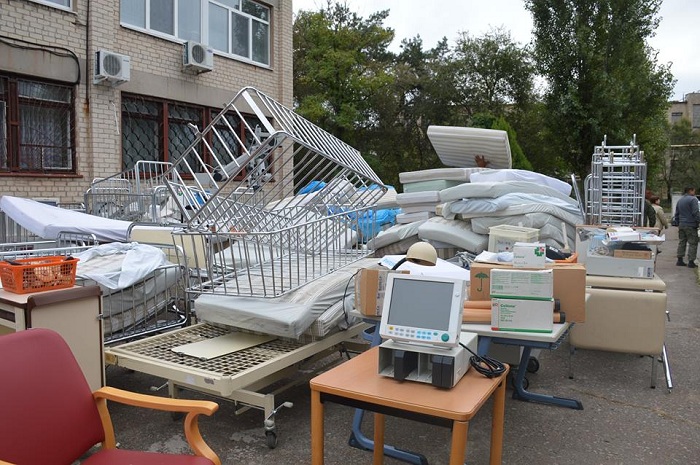 Волонтеры привезли современное оборудование и мебель: инкубаторы для новорожденных, операционные столы, аппараты искусственного дыхания, УЗИ аппарат, столы, стулья и многое другое.