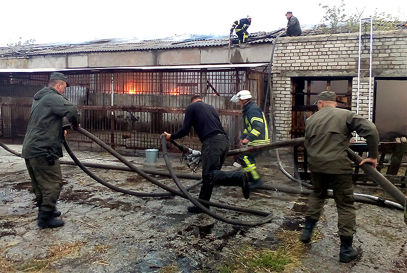 На днях военнослужащие 3 оперативной бригады Национальной гвардии, выполняющие задачи в зоне АТО в г. Покровск, спасли детей и животных от пожара, возникшего в местном мини-зоопарке.