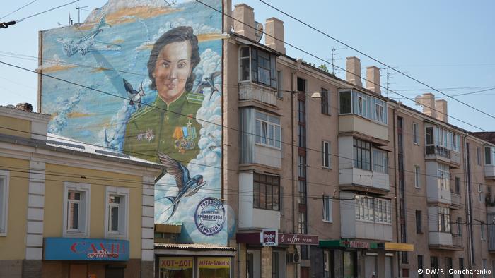 Есть в Харькове и потрет настоящей летчицы - Валентины Гризодубовой, коренной харьковчанки. Гризодубова стала первой женщиной, получившей звание героя Советского Союза за перелет из Москвы на Дальний Восток в конце 1930-х. Во время Второй мировой войны она командовала авиаполком.