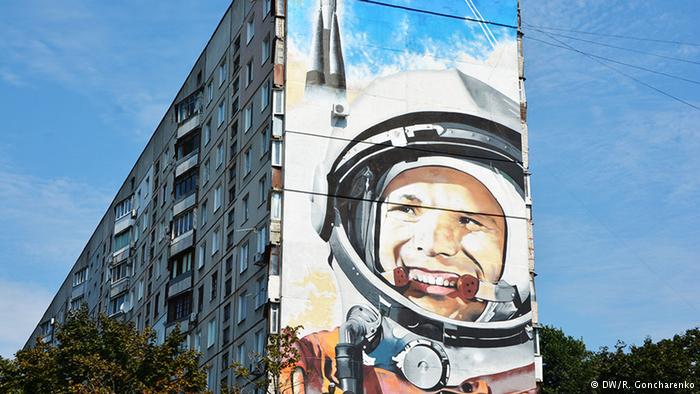 Все, кто едет из аэропорта в центр Харькова по проспекту Гагарина, проезжает мимо гигантского портрета первого советского космонавта Юрия Гагарина. Изображение на многоэтажке считается одним из самых больших на Украине.