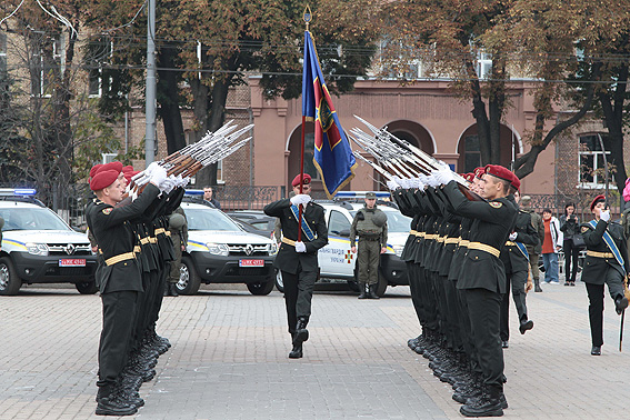 В конце мероприятия состоялись показательные выступления личного состава специального батальона (Почетного караула Национальной гвардии Украины) 25-й бригады по охране общественного порядка.