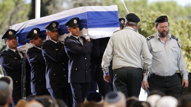 Тело Переса было предано земле с воинскими почестями. На церемонии присутствовал ряд политических лидеров, в том числе президент Украины Петр Порошенко, президент США Барак Обама, британский принц Чарльз и глава Палестинской национальной администрации Махмуд Аббас.