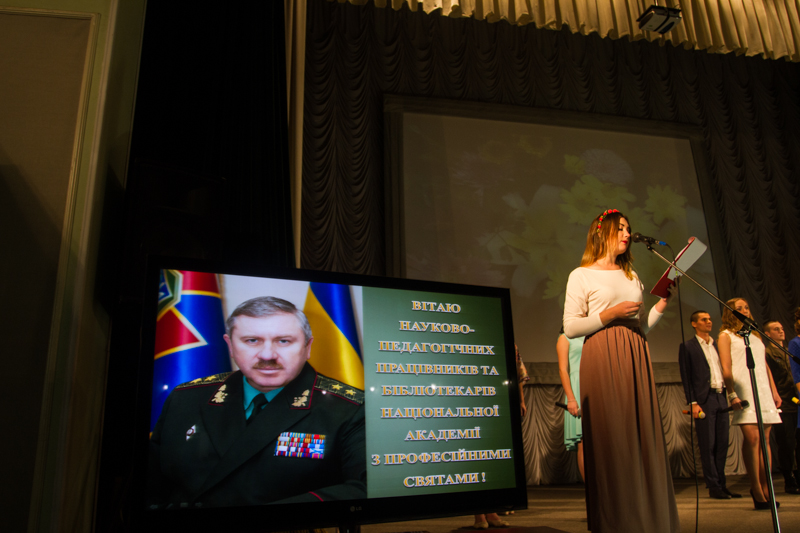 Начальник Национальной академии Национальной гвардии Украины генерал-майор Владимир Пеньков выступил со словами искренних поздравлений и наилучших пожеланий педагогическому составу Академии: «Уважаемые товарищи, сегодня Украина приветствует библиотекарей, учителей и преподавателей. Мы все хорошо понимаем ответственность, которая лежит на их плечах. Благодаря их нелегкому ежедневному труду, Академия ежегодно обеспечивает Нацгвардию качественно подготовленными, компетентными офицерскими кадрами. Среди наших воспитанников - выдающиеся командиры, герои Украины и это тоже является достижением наших педагогов. Благодаря знаниям и умениям, которые передают наши педагоги, уже воспитано не одно поколение патриотов, которые даже сейчас, в эту самую минуту, умело и качественно противостоят существующим угрозам украинскому государству и его народу. Я желаю всем учителям и воспитанникам счастья, здоровья, удачи, вдохновения, дальнейших творческих успехов. Пусть ваша работа всегда приносит пользу и работает на то, чтобы курсанты и студенты Академии были лучшими представителями молодежи нашего независимого государства».