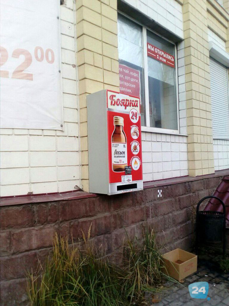 Настойку боярышника по 20 рублей за флакон автомат продает круглосуточно. На флаконах, впрочем, написано «Лосьон косметический». Но, судя по рекламе торговых автоматов «Боярка», появившейся в интернете, по флаконам разлит вовсе не лосьон, а именно настойка боярышника.