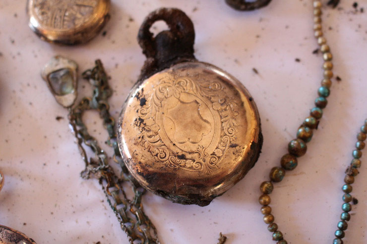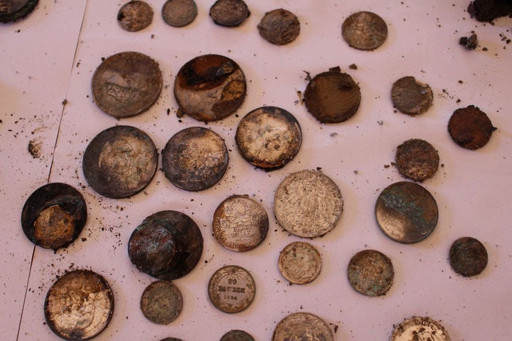 В месте, обозначенном на карте, были найдены два треснувших кувшина, в которых лежали часы, украшения, монеты XIX века и портсигар 1935 года. Все было отправлено на экспертизу. Если выяснится, что находки представляют историческую ценность, их отправят в местный музей.