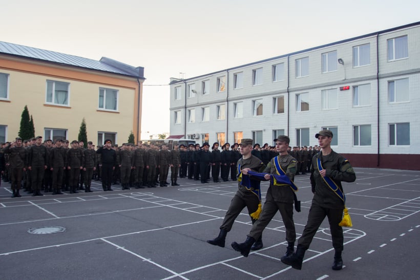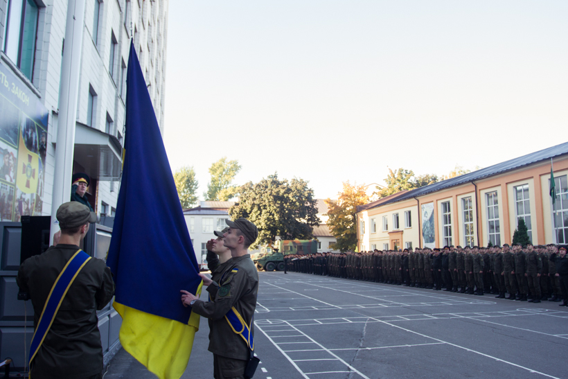 Началось торжественное мероприятие с поднятия государственного флага лучшими военнослужащими батальона и исполнения государственного гимна Украины.