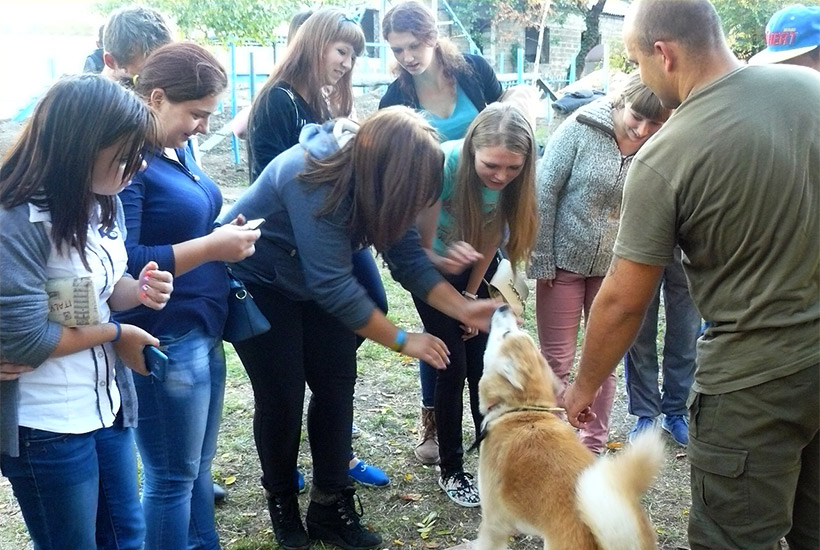 Кинологи части продемонстрировали полосу препятствий для подготовки служебных собак и провели занятия с четвероногими служащими, что не оставило равнодушными юных гостей.