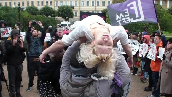 «Мы видим, что сейчас РПЦ открыто использует агрессию. Видимо, господин Гундяев забыл, что деньги, которые уходят на нужды церкви, берутся также из налогов, которые платят мужчины и женщины. Те самые женщины, которые вынуждены из-за отсуствия средств обращаться к бесплатным абортам по ОМС. И вы хотите это забрать у них, опираясь на антинаучные факты и якобы Библию, преследуя при этом корыстные цели. Кто мы все, как не объекты клерикальной капиталистический машины, где мужчина — это всего лишь солдат, а женщина — это всего лишь инкубатор?,» — заявила организатор акции, представитель движения Left-Fem Наталья.