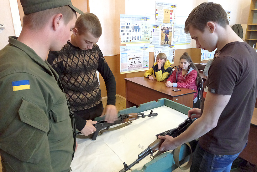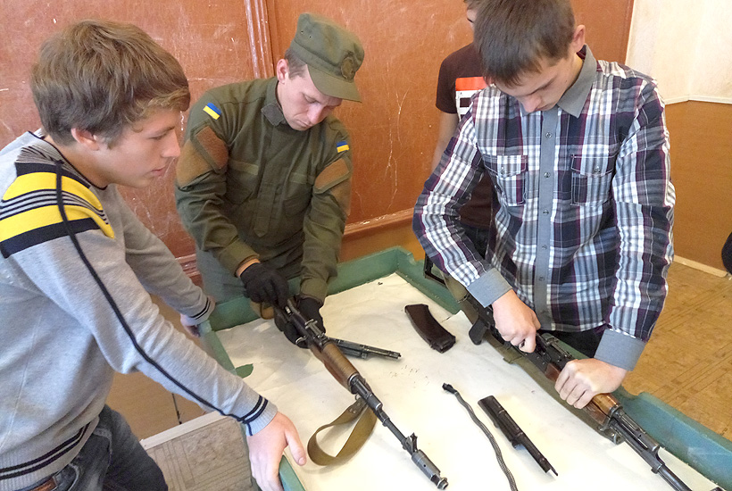 Нацгвардейцы провели занятия по предмету «Защита отечества» для учащихся 10-го класса по огневой подготовке, рассказали ученикам о тактико-технических характеристиках автомата Калашникова, показали порядок неполной разборки и сборки после неполной разборки.
