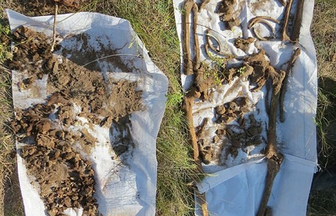 Помимо того, у станции Пойма того же Олешковского района группа «Херсон» обнаружила и следы варварской деятельности черных археологов, также раскопавших захоронение времен Второй мировой на месте былого сражения. Никакого уважения к павшим пираты от археологии не проявили — найденные три ноги, фрагмент черепа и кости скелета они просто сложили в пластиковый пакет и… оставили его валяться в песке. Поисковики забрали останки неизвестных бойцов и передали их в Олешковский горсовет для захоронения со всеми полагающимися почестями. Артефакты с захоронений также получил местный музей.