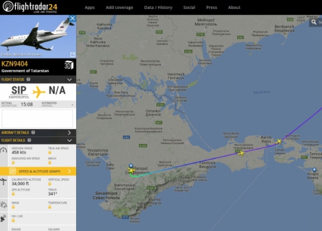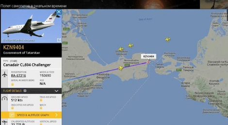 Согласно данным сервиса FlightRadar, который позволяет отслеживать перемещение пассажирских самолетов, борт KZN9404, что относится к правительственного парка Татарстана, отправился 9 октября из аэропорта оккупированного города Симферополя в 15:08.