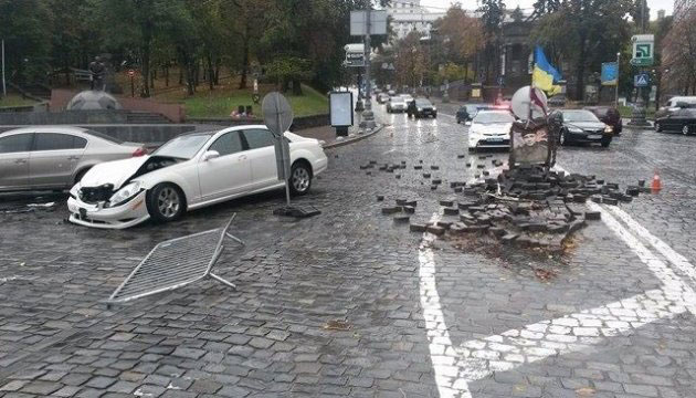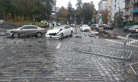 Водитель "Mercedes" не справился с управлением и врезался в памятник герою "Небесной сотни" Михаилу Жизневскому в центре Киеве по ул.Грушевского . ДТП произошло 9 октября.