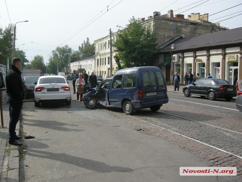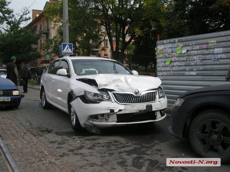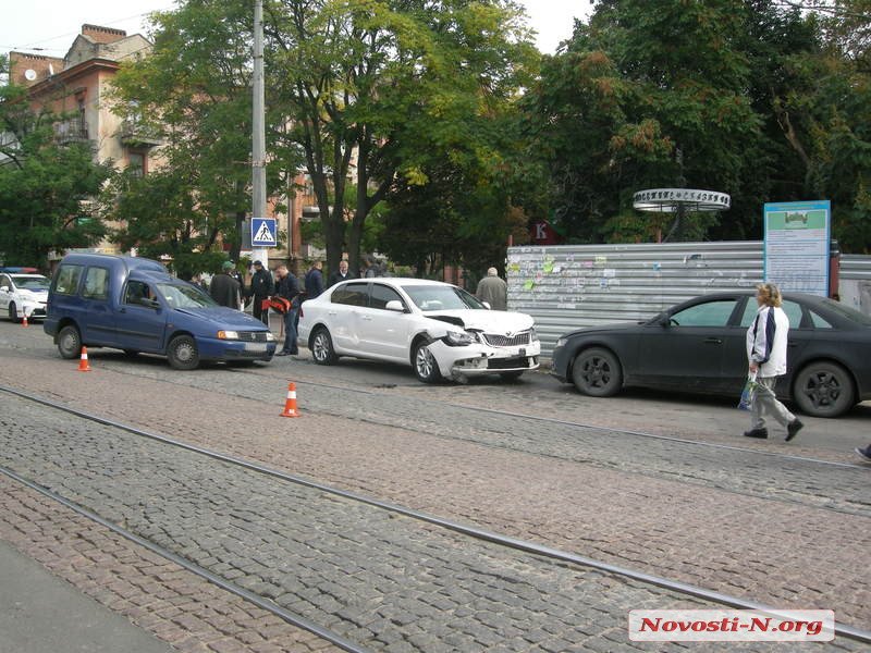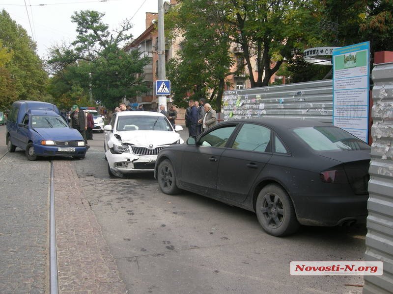 Днем во вторник, 11 октября, на ул. Декабристов в Николаеве столкнулись три автомобиля: Volkswagen Caddy, Skoda Superb и Audi A4.