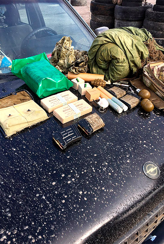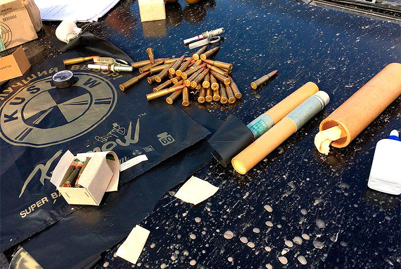 При осмотре транспортного средства на заднем сиденье было обнаружено большое количество боеприпасов, среди которых патроны 7,62, гранаты, осветительные ракеты, дымовые средства.