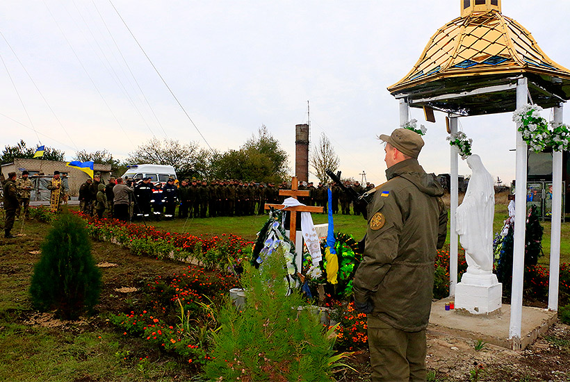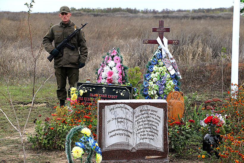 После официальной части, участники митинга возложили цветы и венки к памятному кресту погибшим нацгвардейцам.
