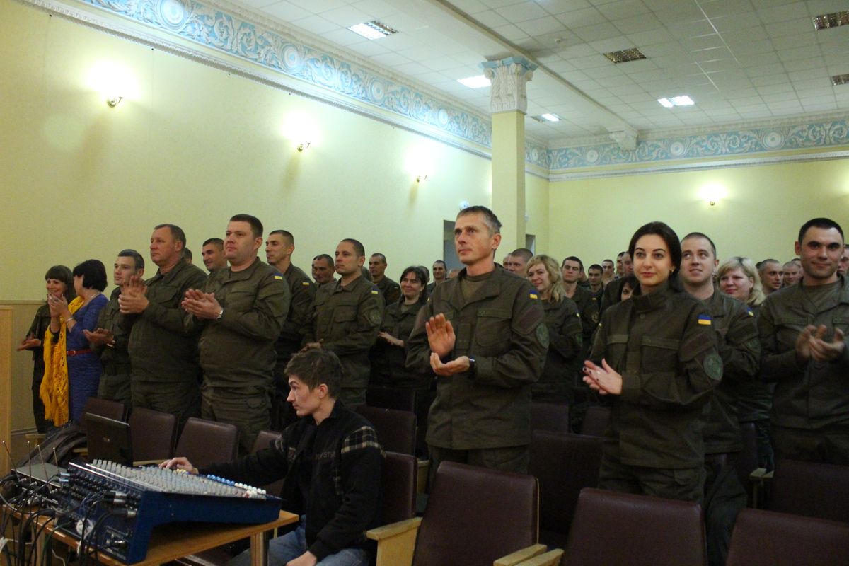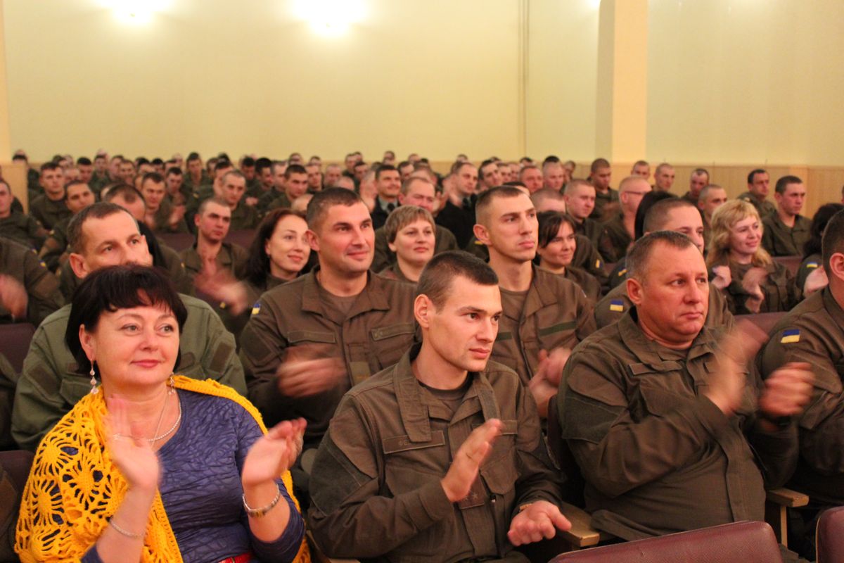 И поддержать действительно удалось, репертуар концерта был разнообразным и интересным: артисты пели украинские песни, а нацгвардейцы не только аплодировали, но и подпевали.