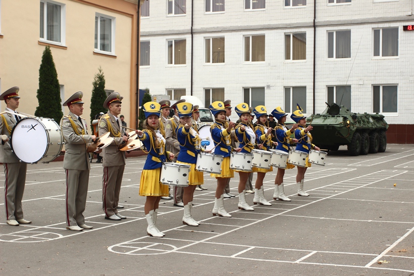 Программа дня открытых дверей состояла из двух частей. Первая - показательные выступления взвода специального назначения, расчетов с карабинами и саблями, дефиле духового оркестра Академии.