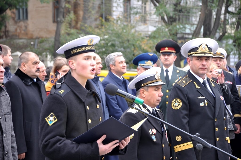 Сьогодні, 14 жовтня, в Одесі, в День захисника України та Покрови Пресвятої Богородиці на площі біля пам’ятника Тарасу Шевченку, відбулась церемонія складання урочистої клятви ліцеїстами Військово-морського ліцею.